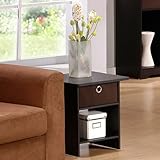 Furinno Living Set - End Table Storage Shelf with Bin Drawer - Espresso Finish, 10004