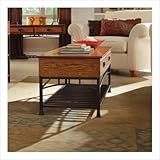 88-5050-21 Features: -Coffee table. -Modern Craftsman. -Distressed oak finish. -Solid and oak veneers construction. -Simple and traditional style. -Brown metal accents. -Two storage drawers and an open storage shelf. -Assembly required. Read more