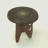 A HANDMADE HANDCARVED HARDWOOD PEDESTAL TABLE THATS 6" WITH BRASS ACCENTS DESIGNED IN AN INTERNATIONAL STYLE!! Read more