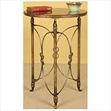 2151 Features: -Table. -Distressed copper finish. -Metal and granite construction. -Black granite top. -Sturdy three leg with stretchers. -Banding around top. -Round side table. -Assembly required. -Overall dimensions: 28'' H x 20'' W x 20'' D. Read more