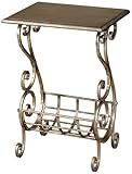A decorative, hand-forged metal base gets a lightly burnished silver leaf finish with a subtle champagne patina to create this distinctive magazine table. By Uttermost. Read more