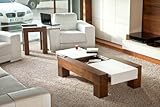 Modern Coffee Table with 2 Sliding Storage Drawers White & Natural Walnut Color Combo and 2 Matching End Table Set