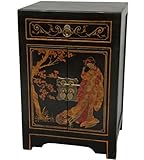 Classic Asian Nightstand - 23" Ming Black Lacquer End Table Cabinet