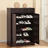 Five Shelf Shoe Cabinet with Two Upper Storage Bins